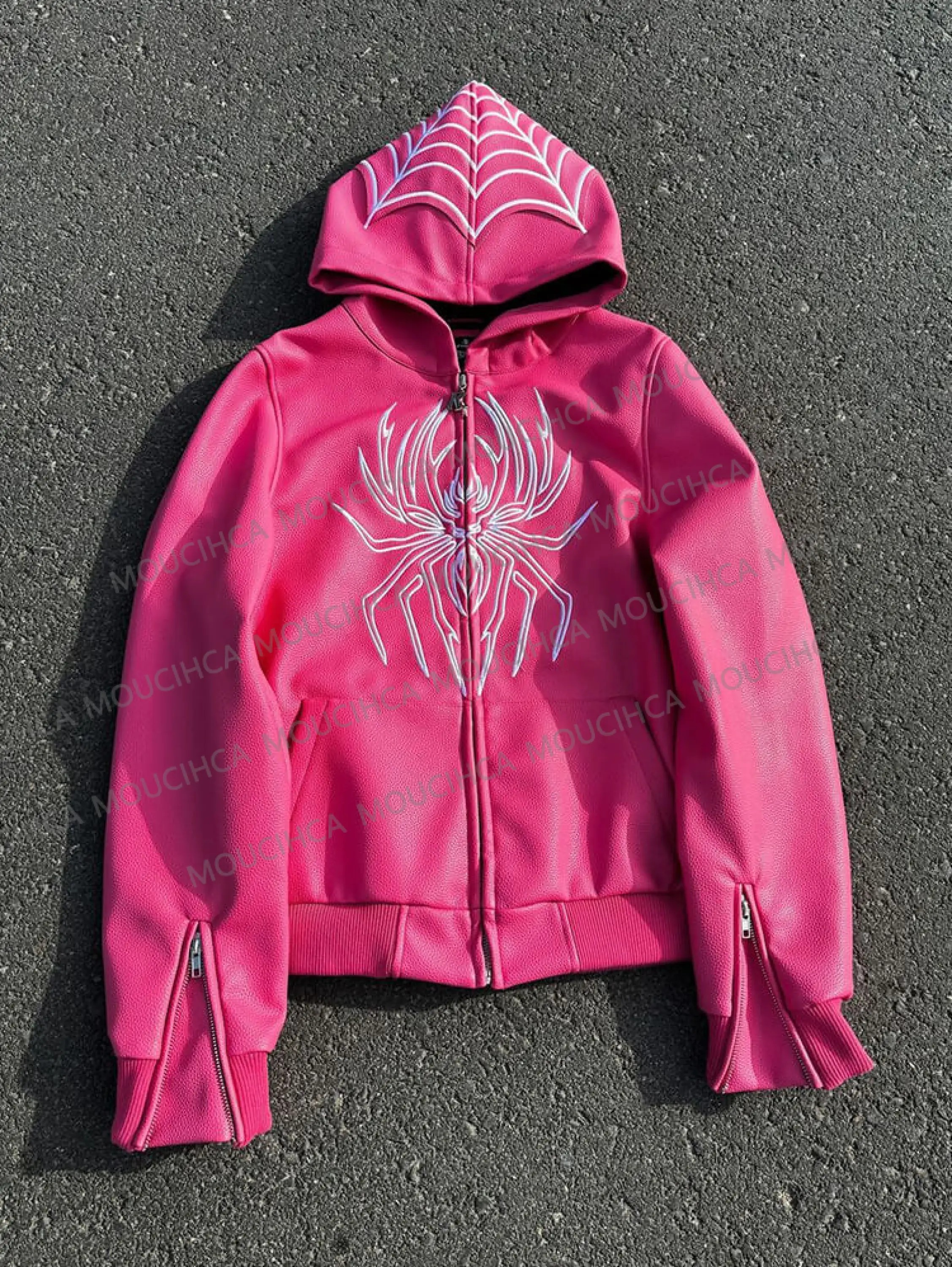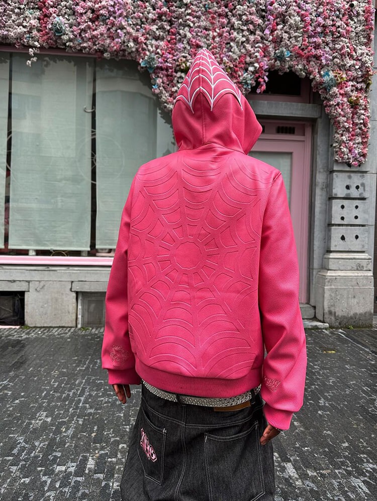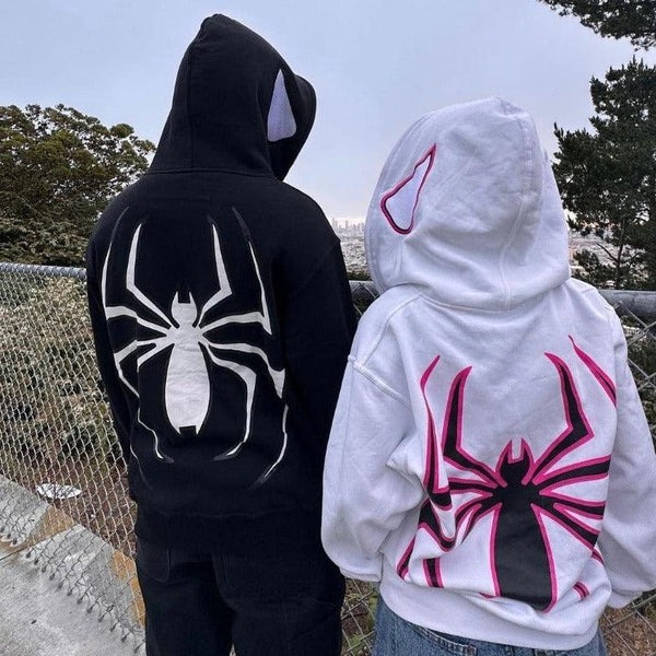 Contrast spider print zip-up hoodie