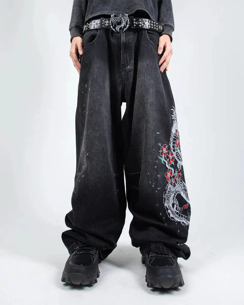 Left leg embroidered graphic: "Sakura Dragon"