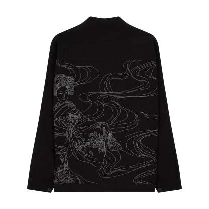 cupra twill fabric / 70% tencel 27% polyamide 3% lyc / embroidery on back / asymmetrical closure / custom buttons / with side slits / regular fit / fits true to size